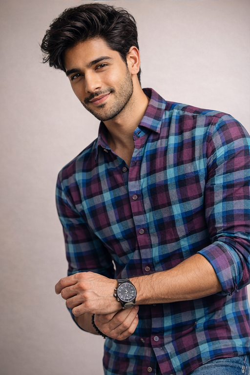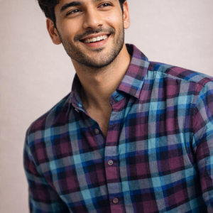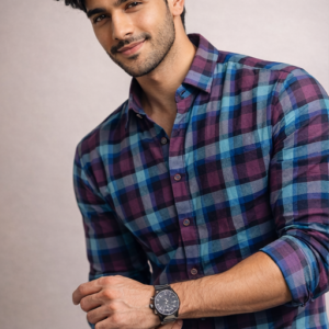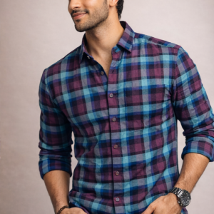 Whether you’re heading to the office, attending meetings, or stepping out casually, this men’s peacock green checkered cotton shirt is a stylish essential for every wardrobe.