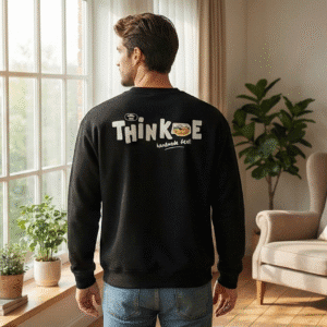 The front features a minimal travel-inspired patch graphic, while the back showcases a bold “THINKOE – Handmade Feel” adventure print, making it perfect for those who appreciate unique streetwear aesthetics. With its relaxed fit, ribbed cuffs, and stretchable hem, this sweatshirt easily pairs with jeans, joggers, or casual trousers—ideal for daily wear, coffee runs, travel plans, or cozy weekends at home.