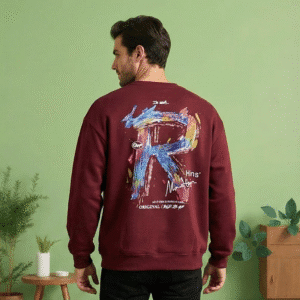 Be the first to review “Men’s Premium Maroon Sweatshirt with Multicolor Artistic “R” Print – Soft Cotton Blend, Full Sleeves”