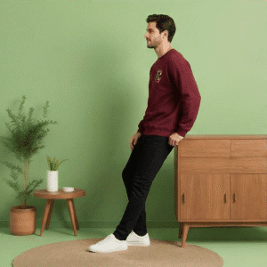 Pair it effortlessly with jeans, joggers, or trousers for outings, travel, casual meetups, or lounging. The rich maroon shade adds a classic yet modern appeal, making this sweatshirt a standout choice for versatile styling.