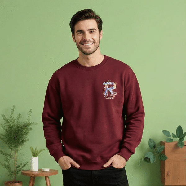 Be the first to review “Men’s Premium Maroon Sweatshirt with Multicolor Artistic “R” Print – Soft Cotton Blend, Full Sleeves”