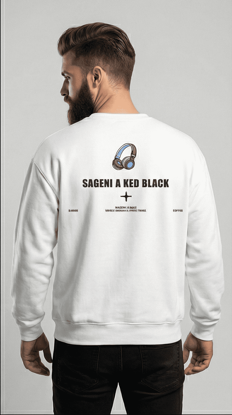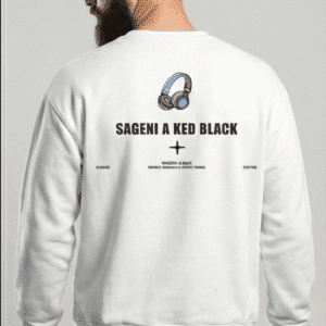 The front features a minimal headphone graphic on the chest, adding a modern and trendy touch. At the back, a bold SAGENI A KED BLACK statement print enhances the overall streetwear-inspired look.