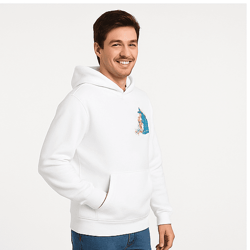 - Men’s white hoodie
