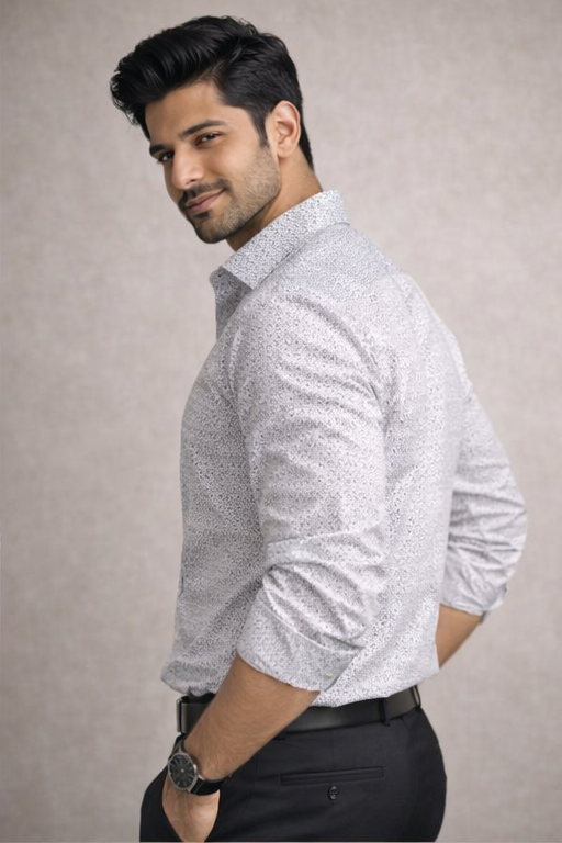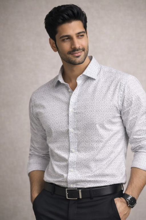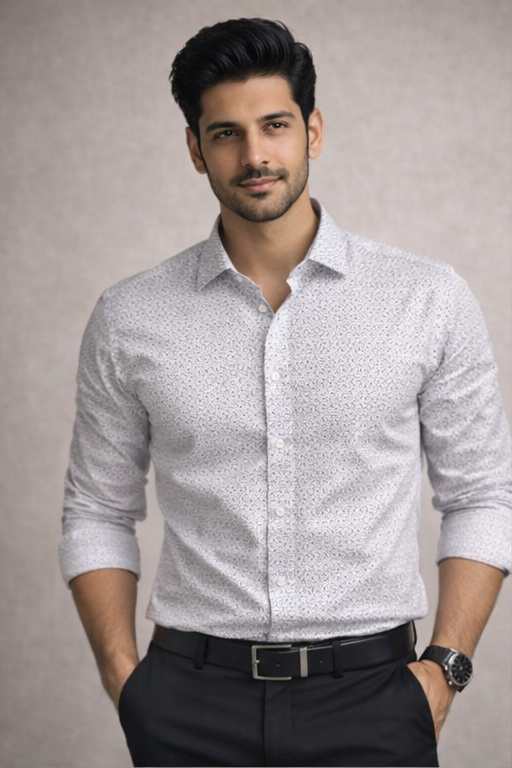 Men’s White Micro Dotted Slim Fit Formal Shirt – Premium Office Wear