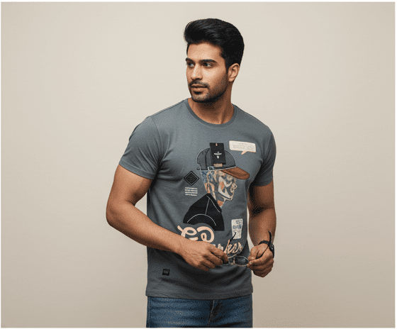 Modern Pista Front Printed Round Neck Half Sleeves for Men by M&T Fashion offers the perfect blend of comfort and style. Ideal for modern men who love effortless fashion.