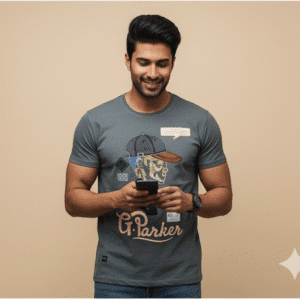 Be the first to review “Modern Pista Front Printed Round Neck Half Sleeves for Men”