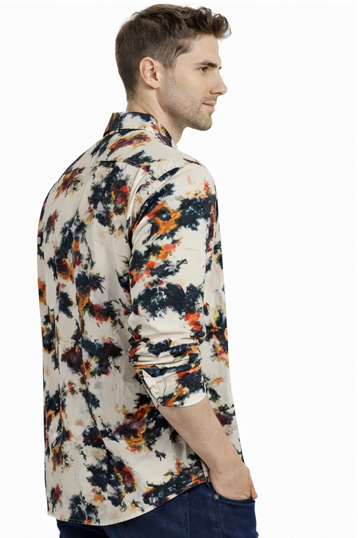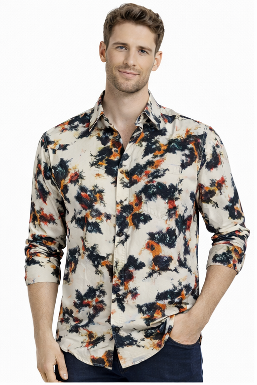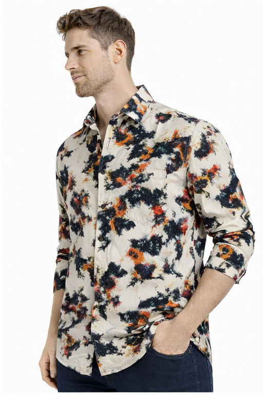 M&T Men Printed Full Sleeve Shirt | Cream Abstract Print Casual Shirt | Stylish Men’s Wear