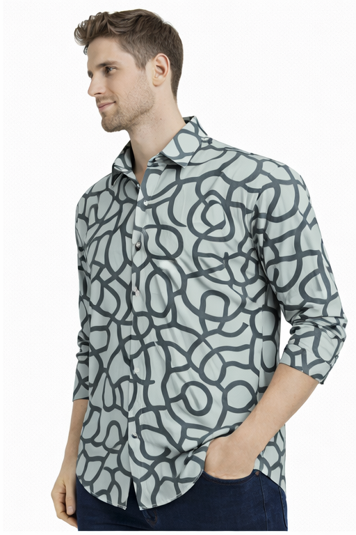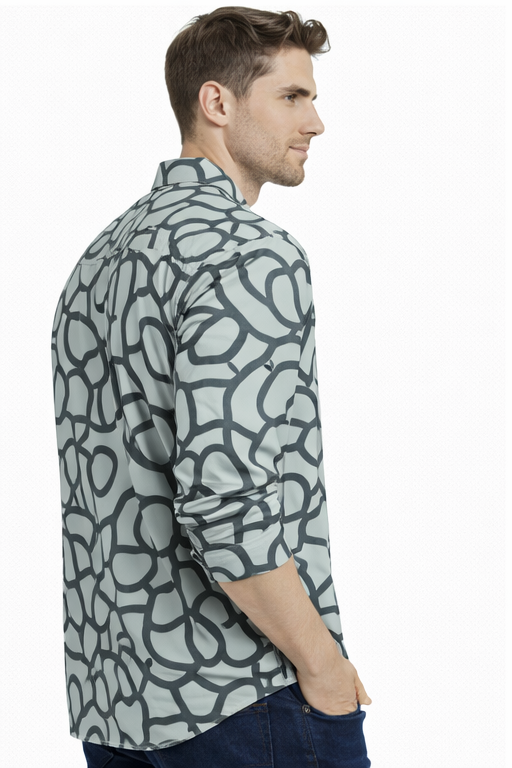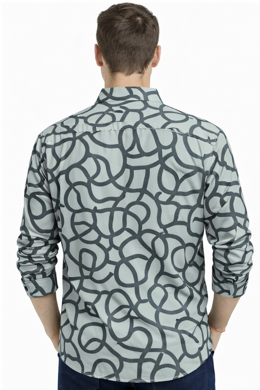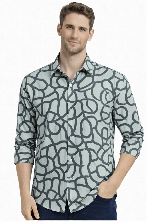 M&T Men Printed Full Sleeve Shirt | Light Grey Abstract Print Shirt | Stylish Casual Men’s Wear