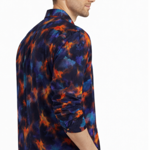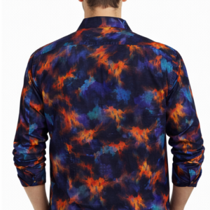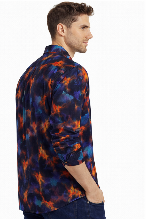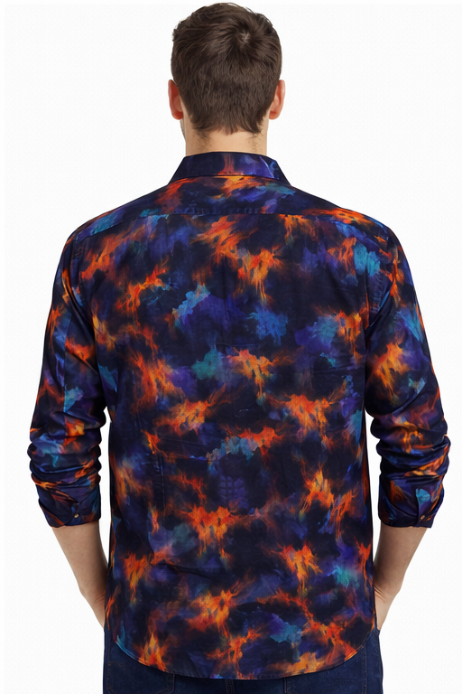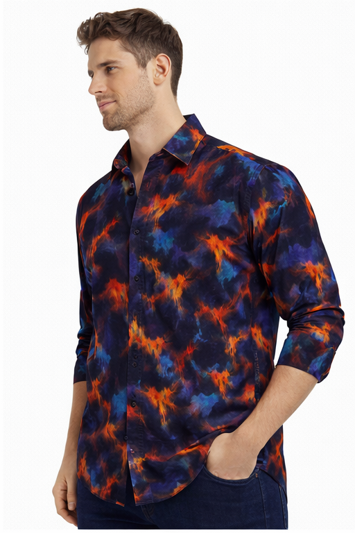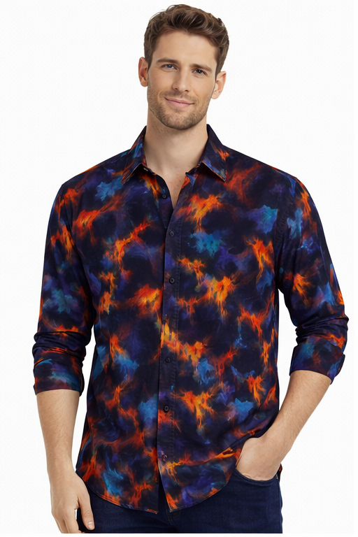 Trendy M&T men’s printed full sleeve shirt featuring a bold multicolor rainbow abstract design. Made from soft, breathable fabric with a comfortable regular fit—perfect for parties, casual outings, and statement looks.