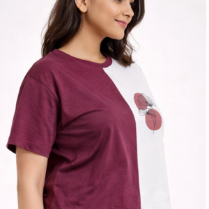 Stylish M&T women’s crop top featuring a trendy white & maroon color-block design with elegant floral print. Soft, breathable fabric with a comfortable fit—perfect for daily wear and casual outings.