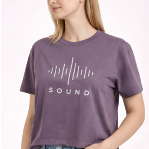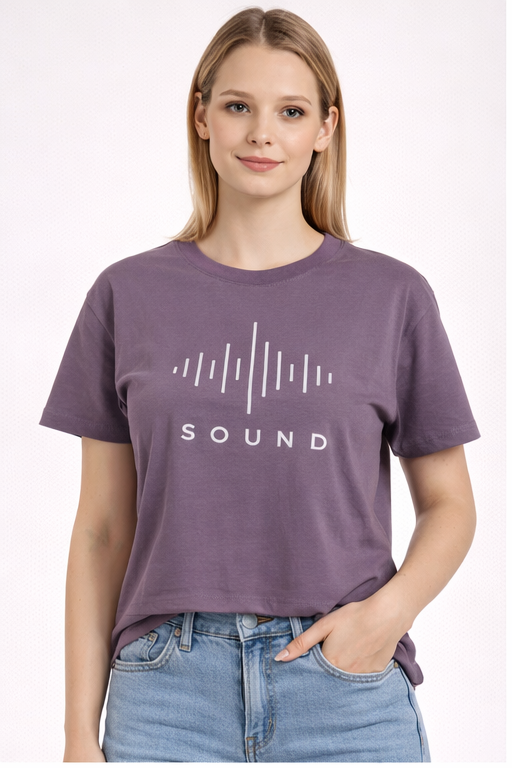 Stylish M&T women’s regular top in purple color featuring modern “SOUND” graphic print. Made from soft, breathable fabric with a comfortable fit—perfect for daily wear and casual outings.