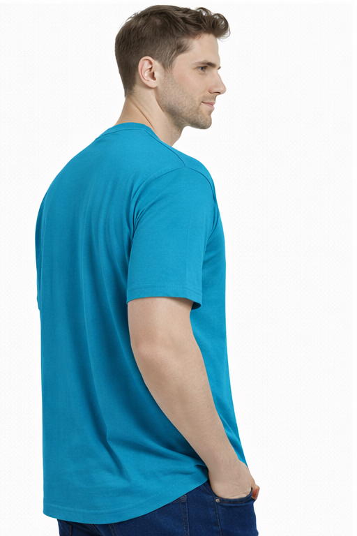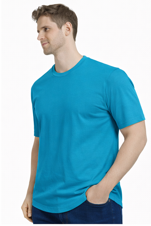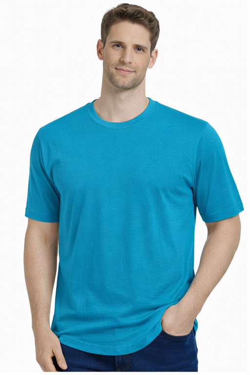 Men’s peacock green solid T-shirt by M&T featuring a classic round neck and soft breathable fabric. Regular fit design makes it perfect for casual, daily, and comfortable wear.