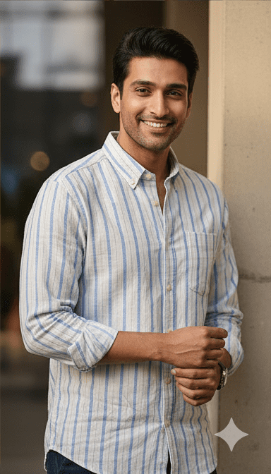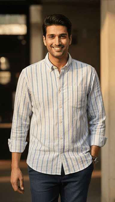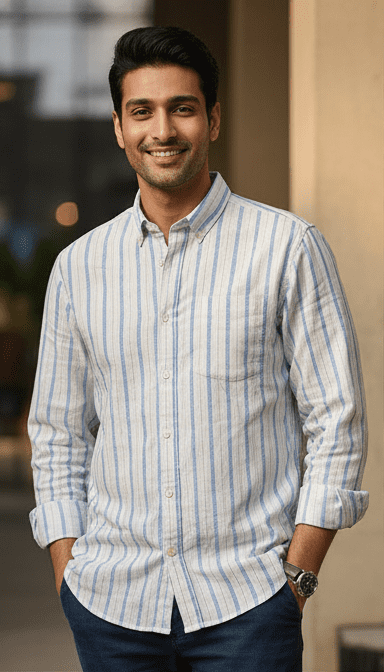 Step out in confidence with Premium Blue Casual Strrip Full Sleeves Mens Shirt for Men from M&T Fashion. Crafted with premium-quality fabric, this piece ensures unmatched comfort and long-lasting durability. Its contemporary fit and elegant finish make it perfect for both casual and semi-formal occasions. Pair it with your favorite tee or shirt for a polished look that stands out wherever you go. Designed for the man who values both trend and comfort, this M&T Fashion creation redefines wardrobe essentials.