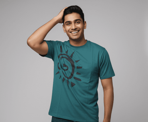 Refined Teal Sun Print Round Neck Half Sleeves for Men by M&T Fashion offers the perfect blend of comfort and style. Ideal for modern men who love effortless fashion.