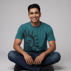 Be the first to review “Refined Teal Sun Print Round Neck Half Sleeves for Men”