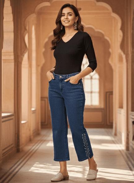 Experience timeless elegance with M&TTrendy Blue Wide Leg W/Party Wear Jeans. for Women. Crafted with fine attention to detail, this jeans offers unmatched comfort and chic style. Designed for the modern woman, itideal for both casual and festive outings. Pair it with elegant accessories and step out in confidence.