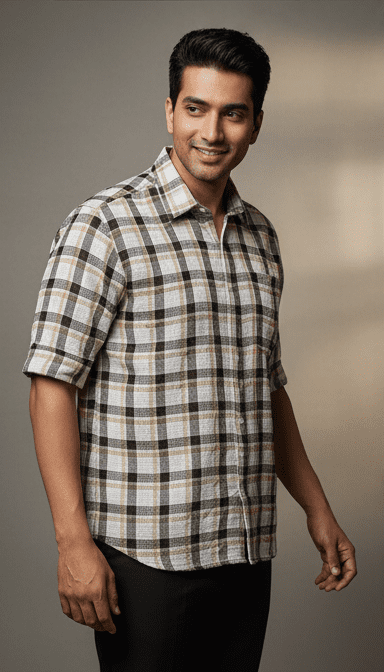 Step out in confidence with Trendy Brown Checks Half Sleeves Mens Shirt for Men from M&T Fashion. Crafted with premium-quality fabric, this piece ensures unmatched comfort and long-lasting durability. Its contemporary fit and elegant finish make it perfect for both casual and semi-formal occasions. Pair it with your favorite tee or shirt for a polished look that stands out wherever you go. Designed for the man who values both trend and comfort, this M&T Fashion creation redefines wardrobe essentials.