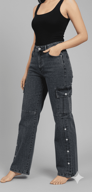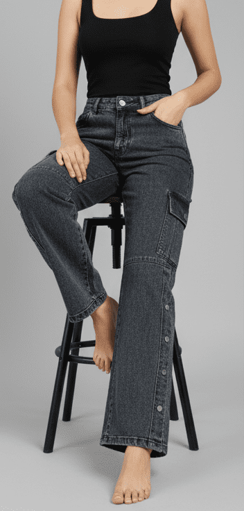 Experience timeless elegance with M&TTrendy Dark Grey Straight Fit Cargo Jeans for Women. Crafted with fine attention to detail, this jeans offers unmatched comfort and chic style. Designed for the modern woman, itideal for both casual and festive outings. Pair it with elegant accessories and step out in confidence.
