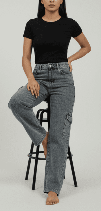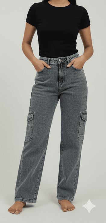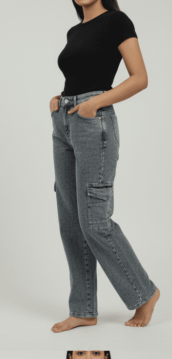 Experience timeless elegance with M&TTrendy Greyish Straight Fit Cargo Jeans for Women. Crafted with fine attention to detail, this jeans offers unmatched comfort and chic style. Designed for the modern woman, itideal for both casual and festive outings. Pair it with elegant accessories and step out in confidence.