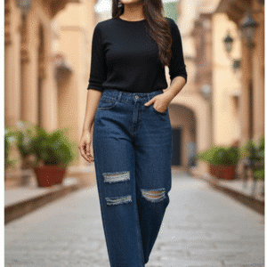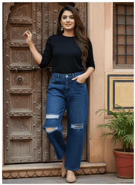 Experience timeless elegance with M&TTrendy Navy Blue Wide Leg Jeans for Women. Crafted with fine attention to detail, this jeans offers unmatched comfort and chic style. Designed for the modern woman, itideal for both casual and festive outings. Pair it with elegant accessories and step out in confidence.