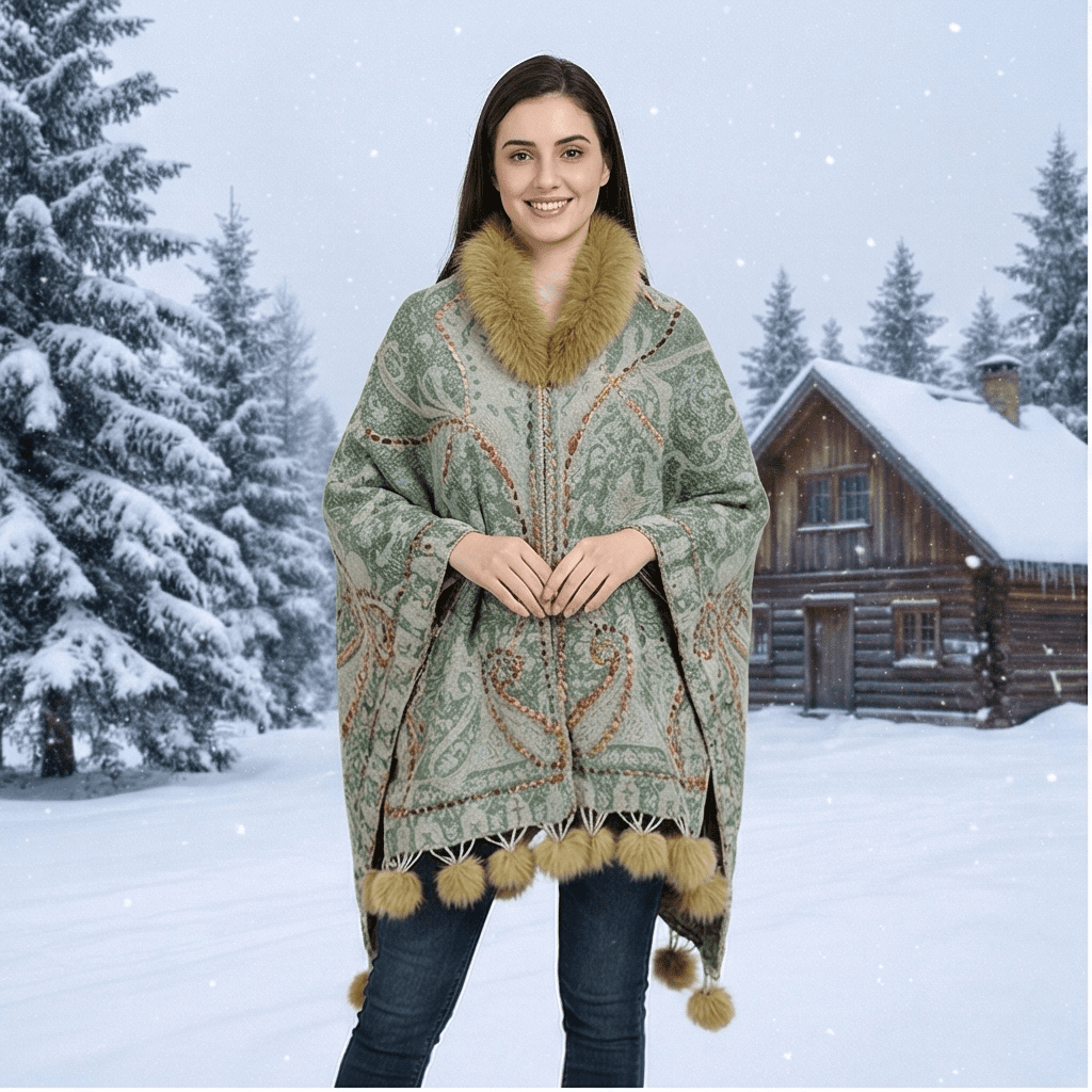 - Premium winter poncho with fur