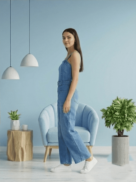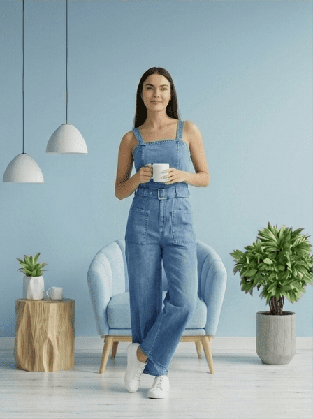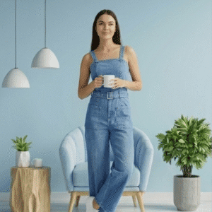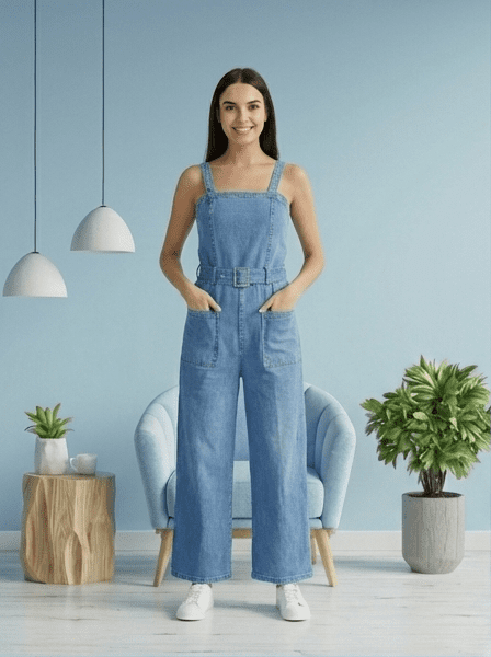 Elevate your everyday style with this Women’s Premium Denim Sleeveless Jumpsuit, designed for comfort, versatility, and modern elegance. Crafted from soft, breathable denim, this jumpsuit features a straight neckline, adjustable shoulder straps, and a stylish denim belt that enhances the waistline for a flattering silhouette.